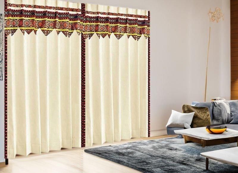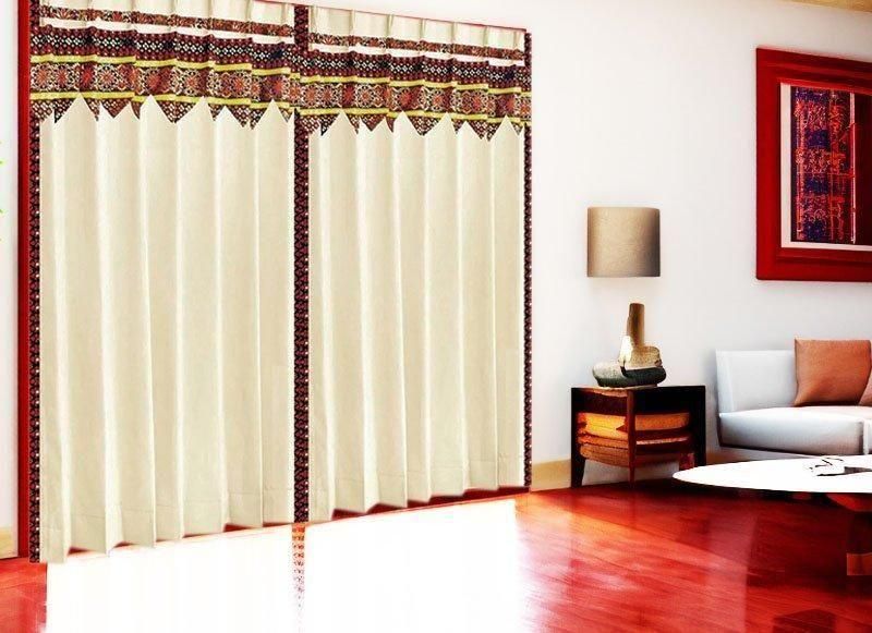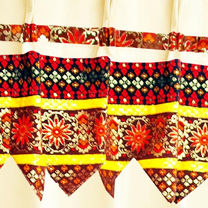 不老長寿・繁栄、さらに勝負運や仕事運の向上を象徴する朱色の菊花模様プラダバティックをフリルにあしらったアジアン風オリジナルデザインカーテン。