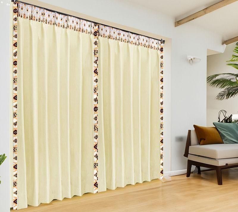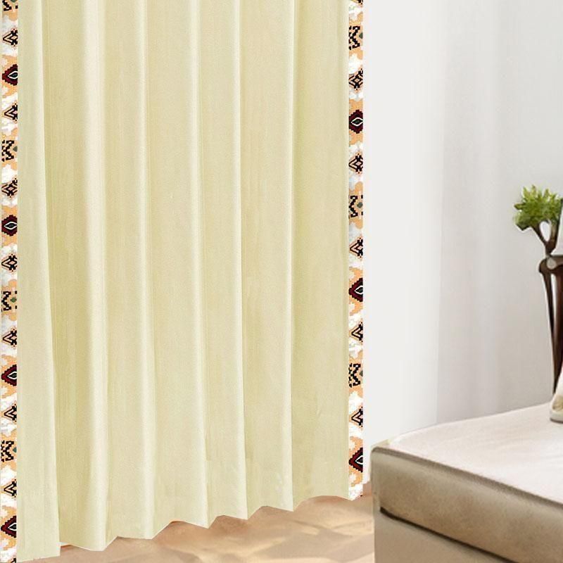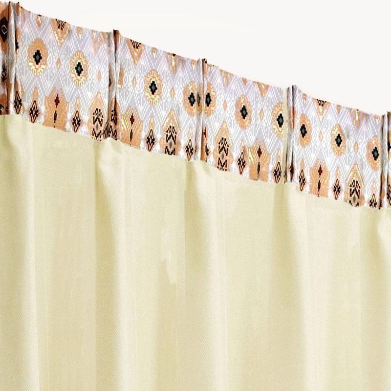 バリ島から直輸入した長寿と繁栄を意味する椰子の実柄を描いたおしゃれなバティック布上飾りとフェミニンな華やかさが際立つクリーム色無地ドレープとのコラボレーションがお部屋をエレガンスなホテル風インテリアにコーディネイトするファッショナブルなフレームデザインのアジアンリゾートカーテン《マーブルTモナコ》を通販でお届け♪