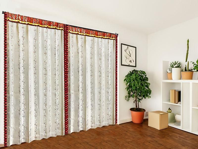 《REIVチロルTテルティナ》は、柔らかなアイボリー色のジャスミン地に、バリ島から直輸入した朱色菊花模様プラダバティックをフレーム状に縁取った北欧×アジアン融合デザインのオリジナルカーテンです。