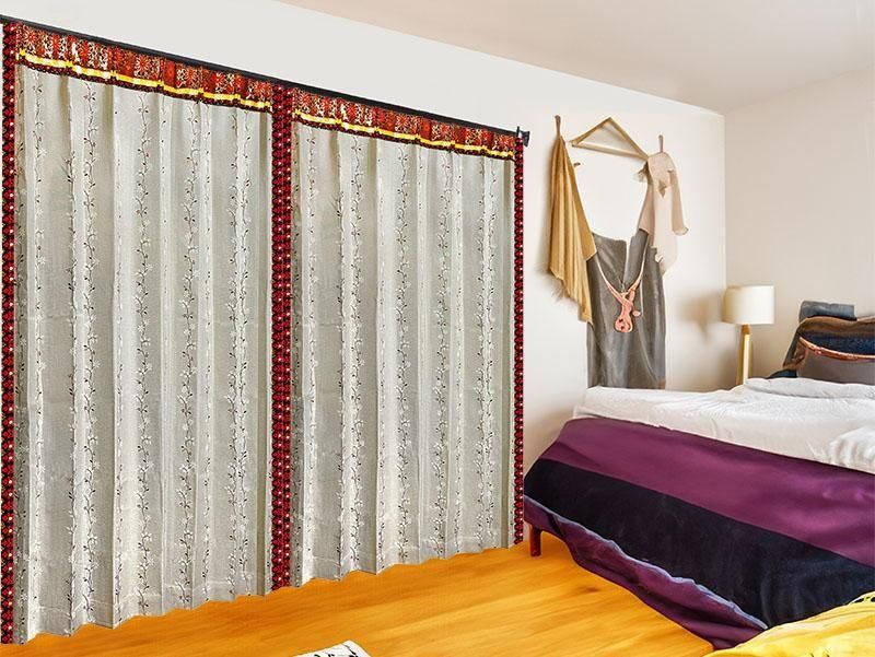 • 北欧×アジアン融合デザイン:朱色の菊花模様が窓辺にアクセントを加え、上品で落ち着いた空間を演出