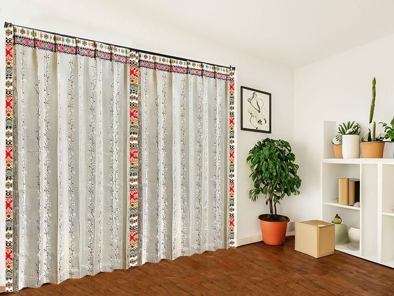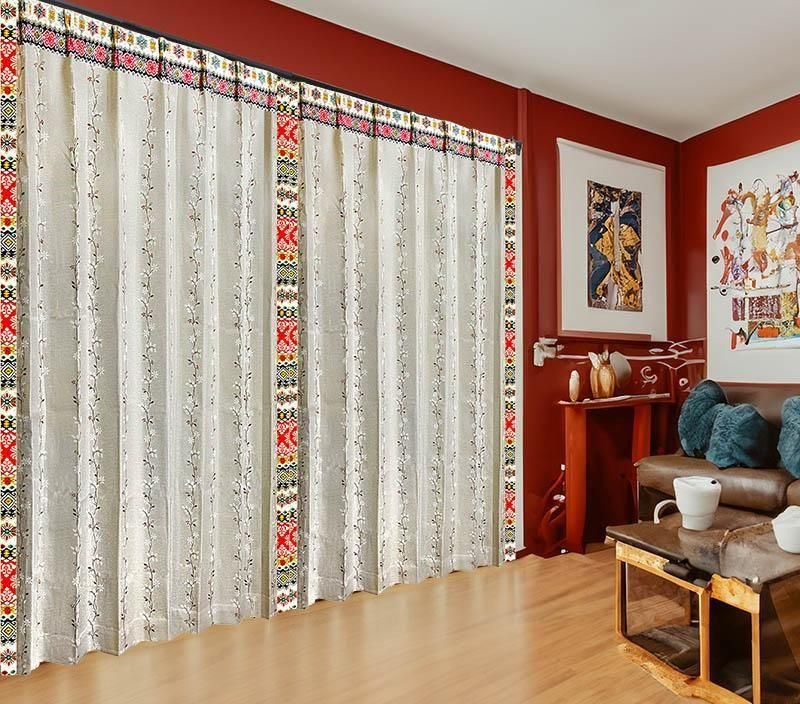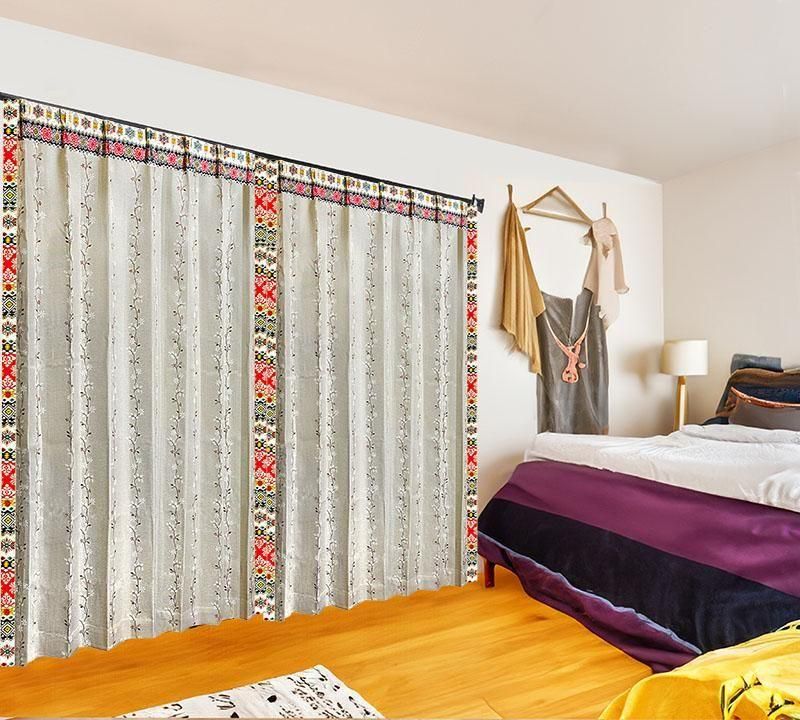 《REIVチロルTアナ》は、柔らかなアイボリー色のジャスミン地に、バリ島から直輸入したピンクのチロリアン模様プラダバティックをフレーム状に縁取った北欧×アジアン融合デザインのオリジナルカーテンです。