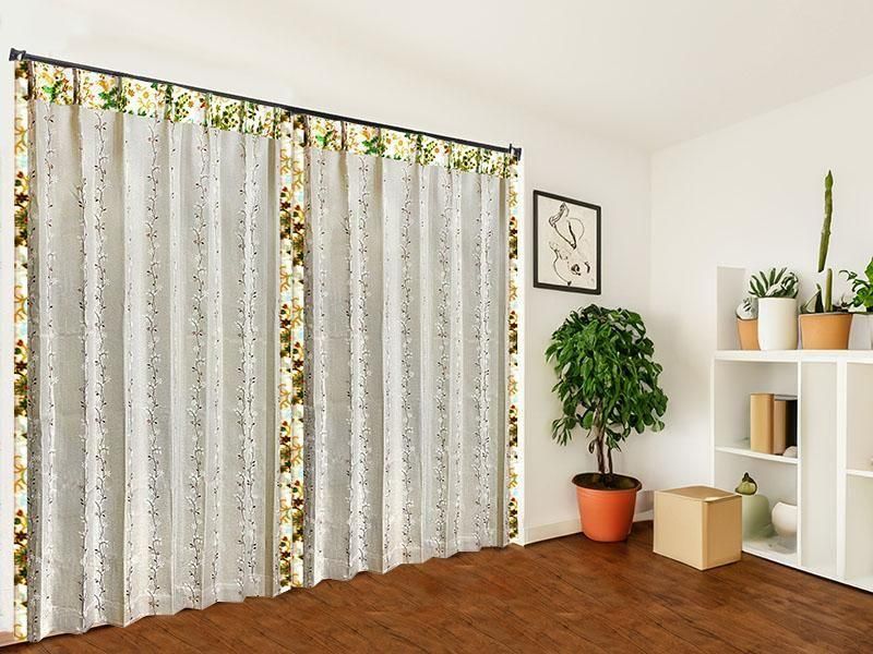 - 北欧×アジアン融合デザイン:若草色蔓草模様が窓辺にアクセントを与え、落ち着いた印象を演出