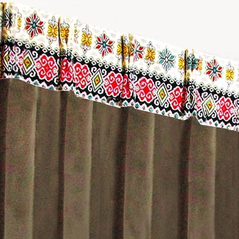 《SABRエクシードTアナ》は、バリ島から直輸入したチロリアン模様プラダバティックをドレープ上部にフレーム状に飾った、おしゃれなアジアンテイストのエステサロンカーテンです。チロリアン模様は金運アップや生命を支える財産運の意味を持ち、サロンや施術室に幸福と活力をもたらします。ブラウン無地のベースカラーが落ち着いた高級感を演出します。