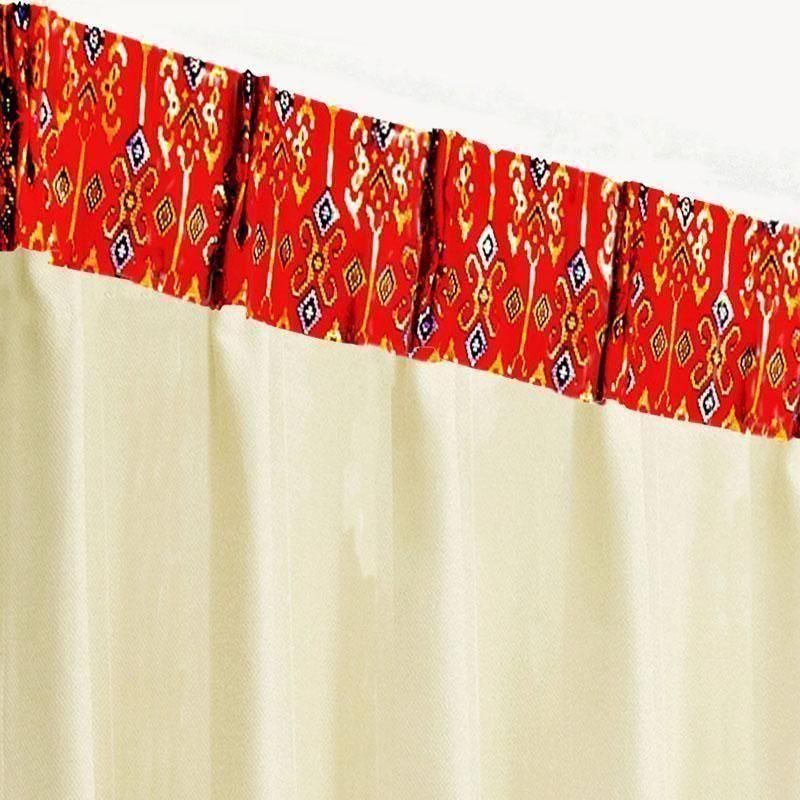 《SACRマーブルTウィディ》は、ドレープをフレーム状に縁取る金色の玉簾模様プラダバティックをあしらった、優美でアジアン風のオリジナルデザインカーテンです。