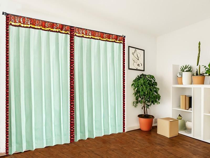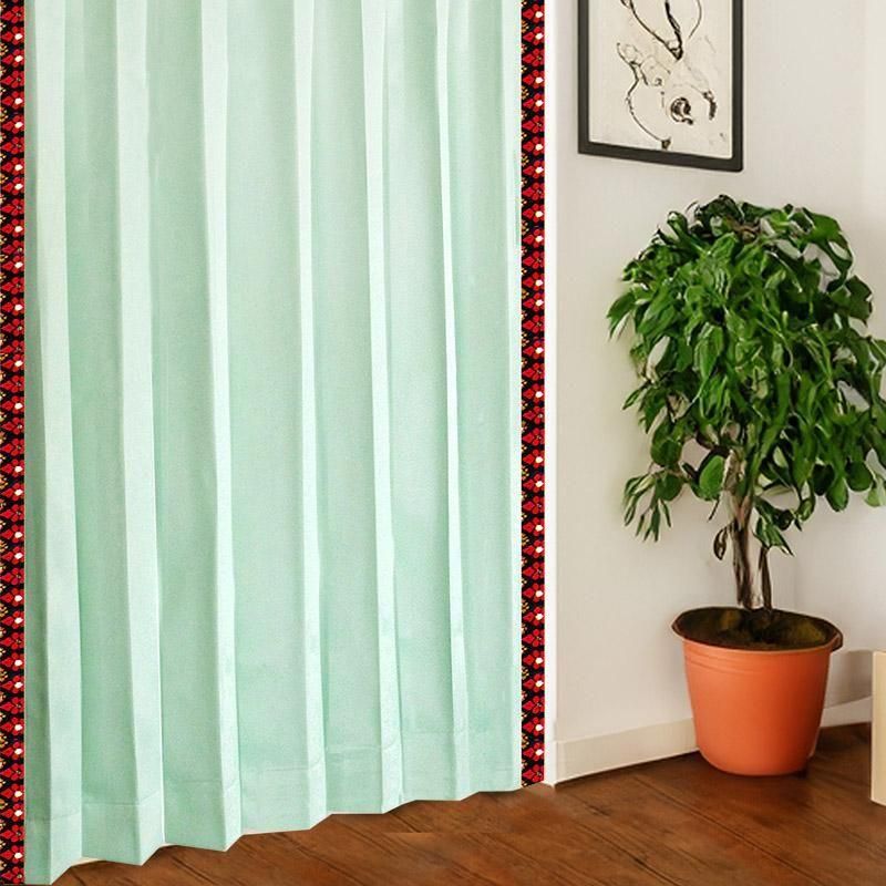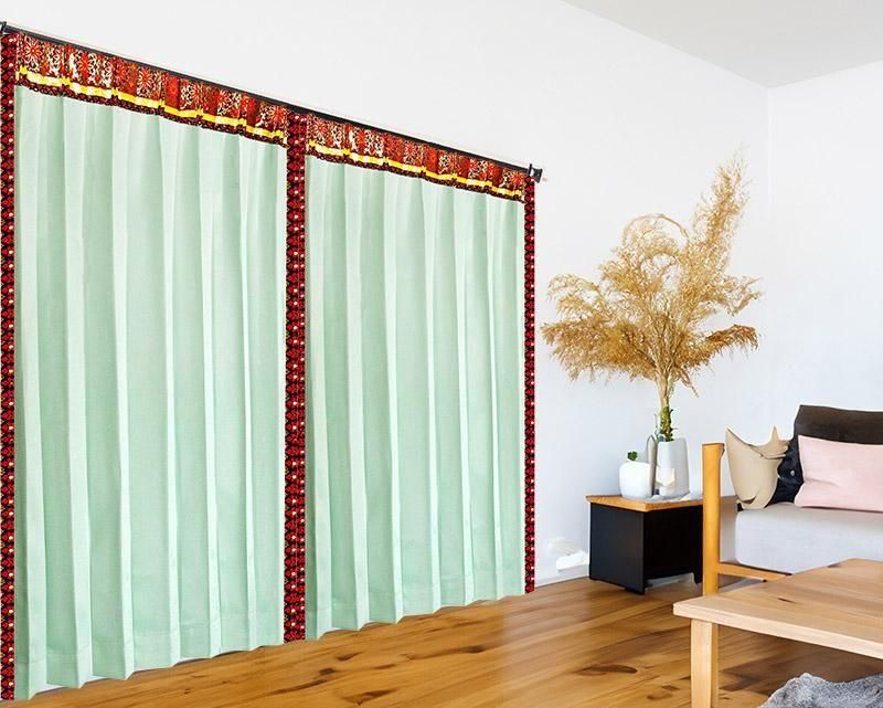 アジアンリゾート カーテン 遮光1級 防炎 おしゃれ アイスグリーン 《エクシードTテルティナ》