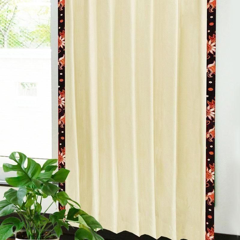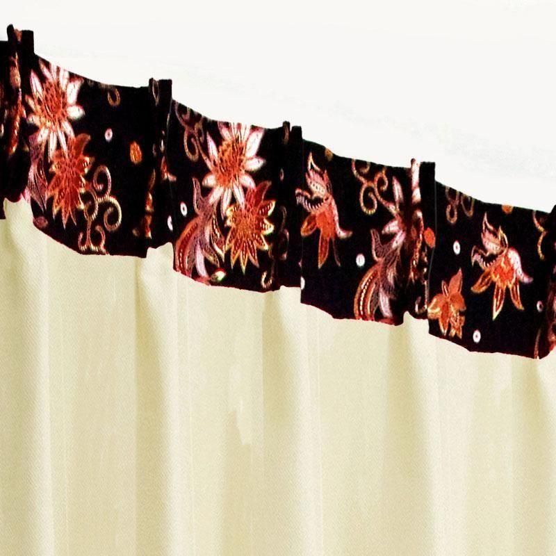 《FACRマーブルTプリンセス》は、柔らかな無地のクリーム色ドレープをベースに、バリ島から直輸入した黒地にハイビスカス模様を描いたプラダバティックをフレーム状に飾り付けたオリジナルデザインのおしゃれ カーテンです。