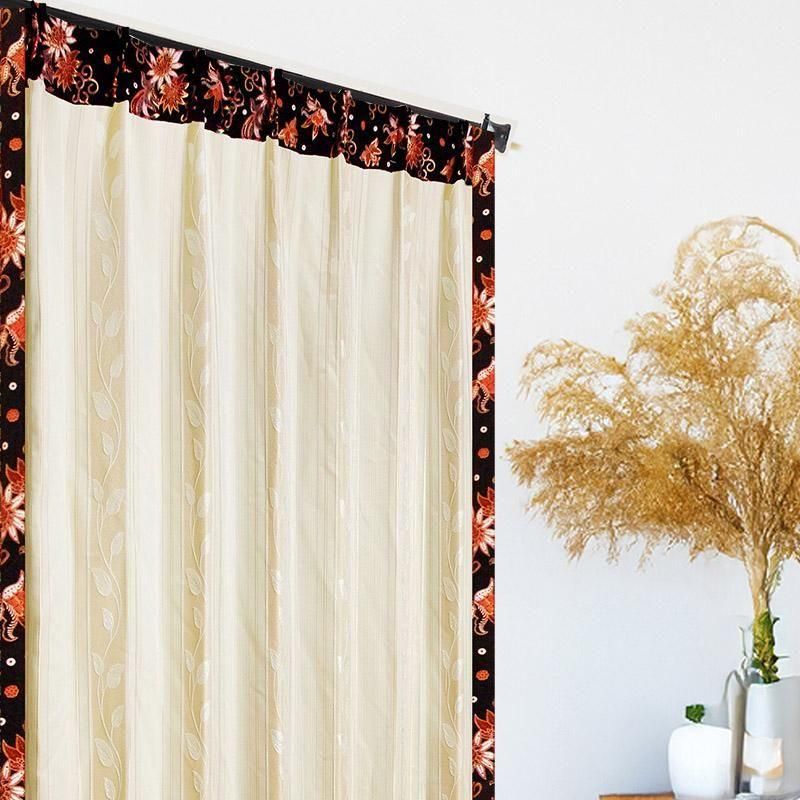 赤色ハイビスカス模様プラダバティックをフレーム状に縁取りとしてあしらった、北欧とアジアンが融合したおしゃれなリゾートカーテンです。