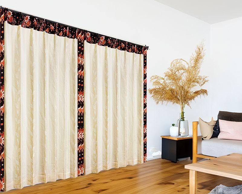遮光・遮熱・防音・裏地付きで、実用性とデザイン性を兼ね備えたカーテンです。