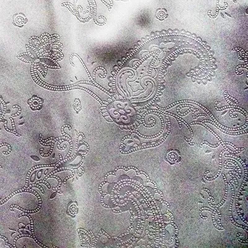 繊細なペイズリー模様にベージュの小桜フリルを組み合わせたデザイン。グレーの落ち着いたトーンに優しい花のアクセントが調和し、上品でエスニックな印象を漂わせます。モダンで洗練されたお部屋にも自然に溶け込みます。
