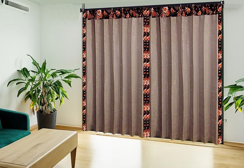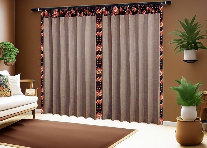 このカーテンは「落ち着いた力強さ」と「上質さ」を同時に与えます。ブラウンのベースに赤色ハイビスカスがアクセントとして効き、男前インテリアの無骨さに柔らかさと高級感をプラス。昼は温かみのあるフィルター越しの光で落ち着いた表情を作り、夜は遮光効果でプライベート感を守ります。