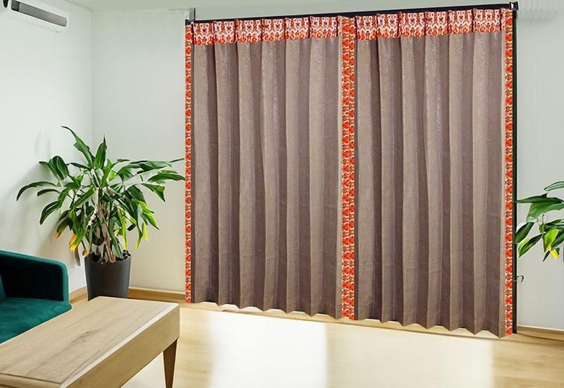 おしゃれなメンズカーテン|MEBRフランジパニTマフロ・ブラウン・宝尽くし模様飾りのご使用イメージ