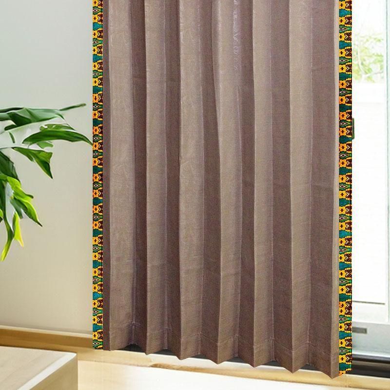 おしゃれなメンズカーテン|MEBEフランジパニTウブド・ブラウン・ターコイズブルーの曼陀羅模様飾り・遮光2級