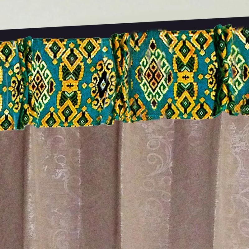 バリ島直輸入のプラダバティック布を使用した、アジアンテイストのオリジナルデザインカーテン。深みのあるブラウン色のドレープに、ターコイズブルーの曼陀羅模様をフレーム状に飾り付け、落ち着きの中に華やかさを添えるおしゃれなメンズカーテンです。