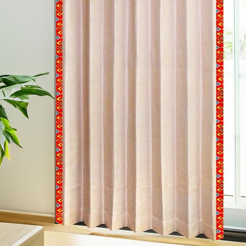 MEBEフランジパニTウィディ・朱色の玉簾模様飾り・遮光2級は、アジアンテイストと上品なベージュの融合で、落ち着きと華やかさを兼ね備えたおしゃれなメンズカーテン。男の部屋を洗練されたリゾート空間へと導きます。
