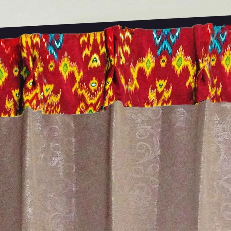 おしゃれなメンズカーテン|MEBRフランジパニTイカット・ブラウン・オレンジの生命の樹模様飾り・遮光2級