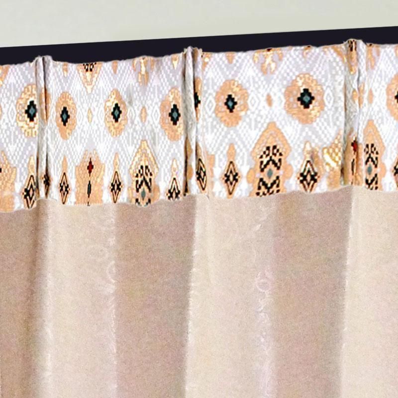 MEBEフランジパニTパギ・ベージュ・亀甲模様飾り・遮光2級は、落ち着いたベージュと伝統的な亀甲模様の融合によるおしゃれなメンズカーテン。アジアンモダンで上質なデザインが、男の部屋を穏やかで安定感のある空間へと導きます。