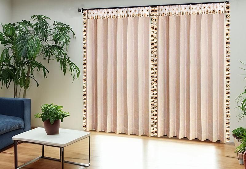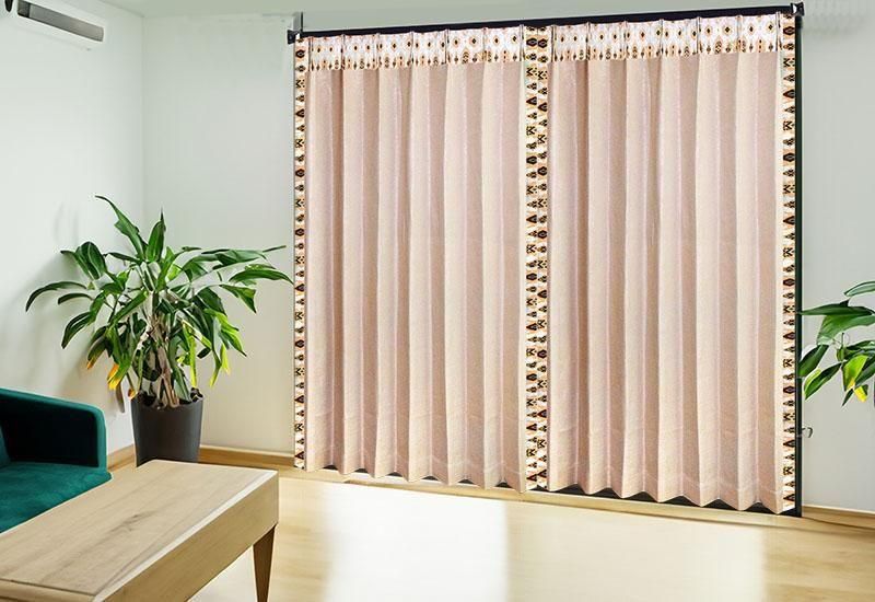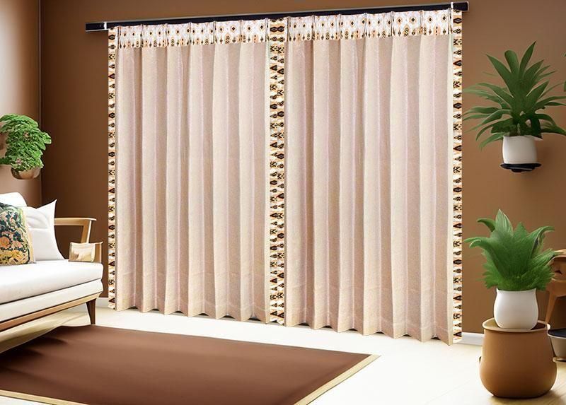 おしゃれなメンズカーテン|MEBEフランジパニTパギ・ベージュ・亀甲模様飾り・遮光2級