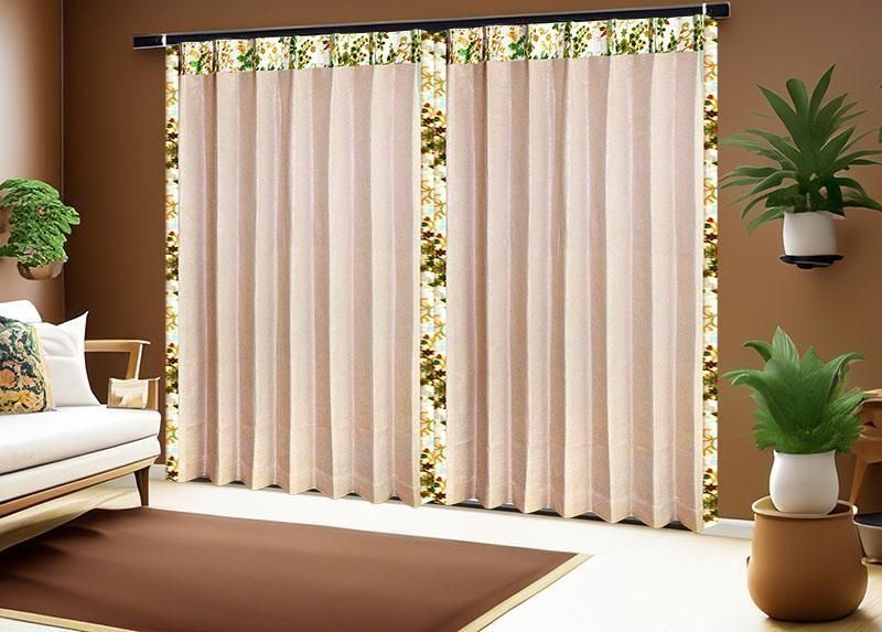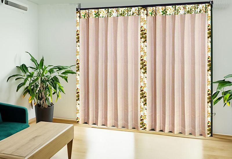 おしゃれなメンズカーテン|MEBEフランジパニTパダン・ベージュ・若草模様飾り・遮光2級