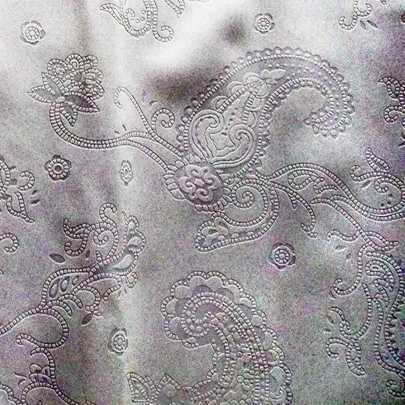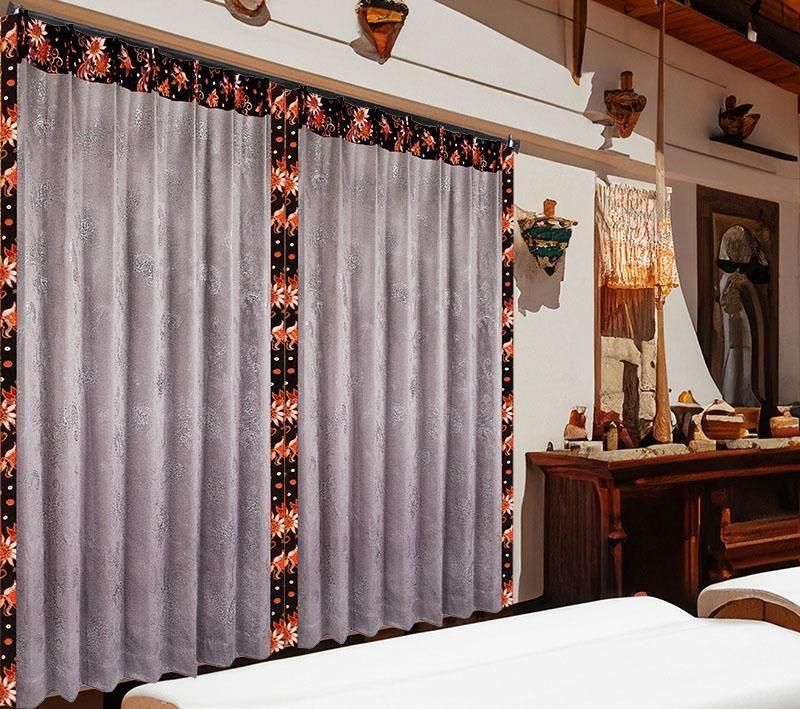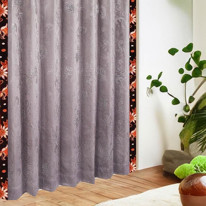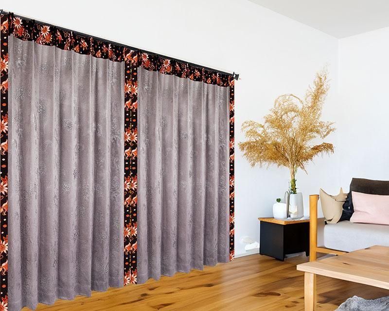 メンズカーテン・おしゃれ・遮光1級・遮熱・防音・グレー・ペーズリー柄|MEGYカシミールTプリンセス・赤色ハイビスカス模様飾り