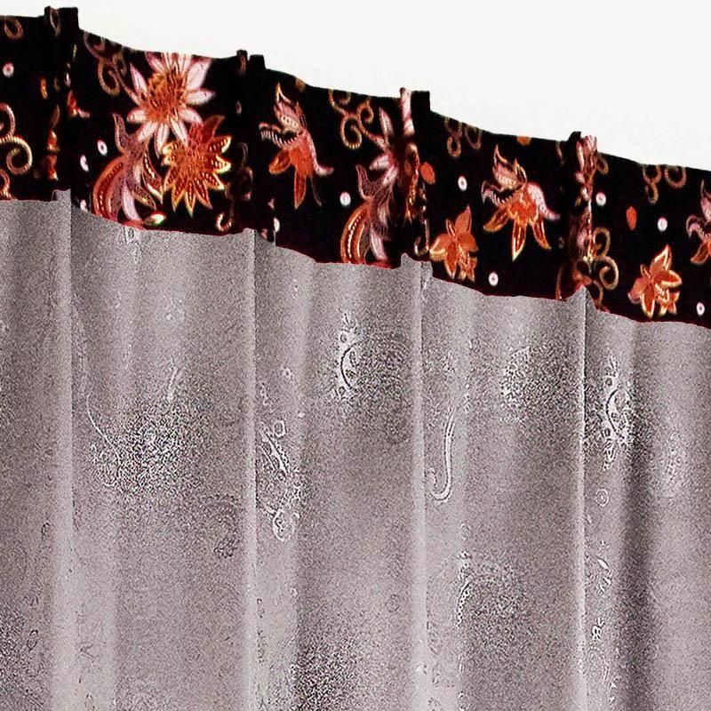 バリ島直輸入のプラダバティック布を使用した、赤色ハイビスカス模様のアジアン風メンズカーテン。グレーのペーズリードレープにエンボスプリントを施し、フレーム状に配した赤の装飾が洗練された存在感を放ちます。遮光1級・遮熱・防音機能を兼ね備えた、おしゃれで機能的な男前インテリアカーテンです。