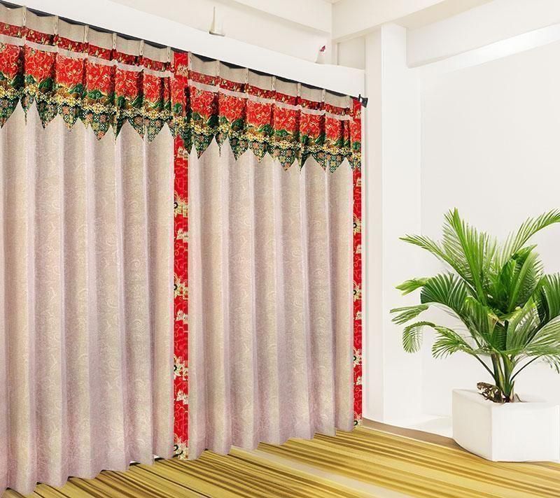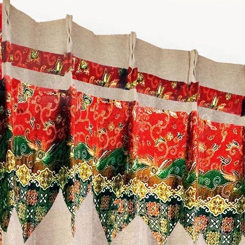 バリ島から直輸入した海老茶の唐草模様プラダバティック布フリルを、