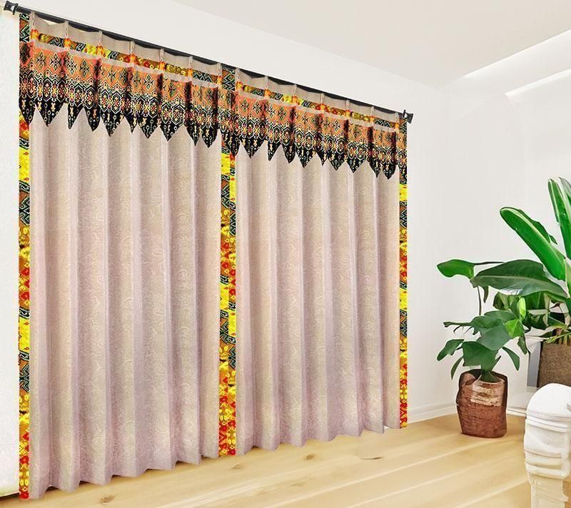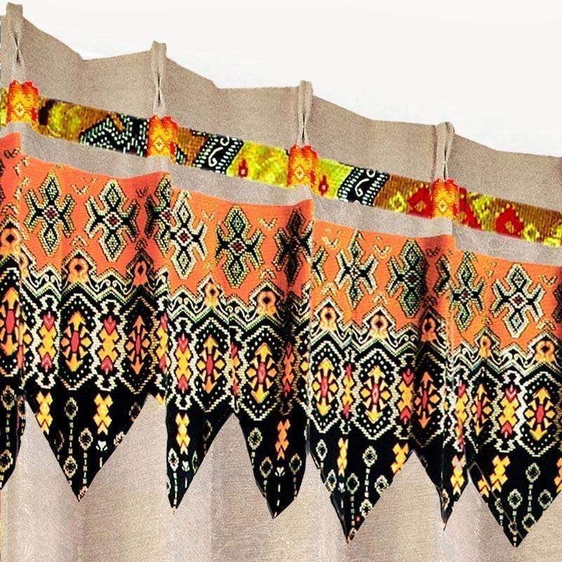 バリ島直輸入のカフェオレ色七宝模様プラダバティック布フリルを