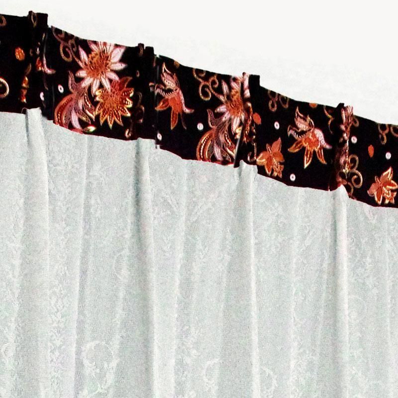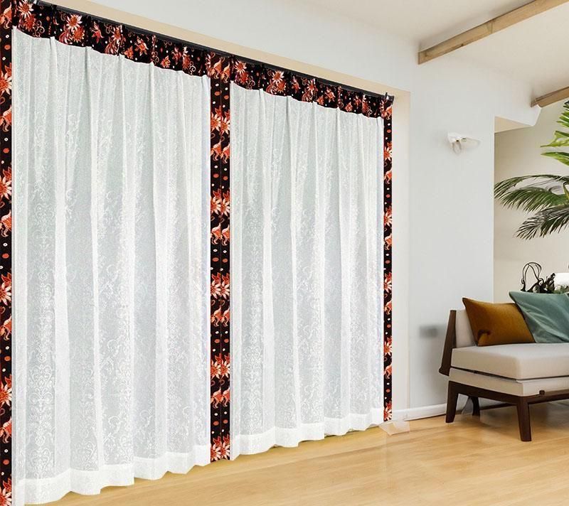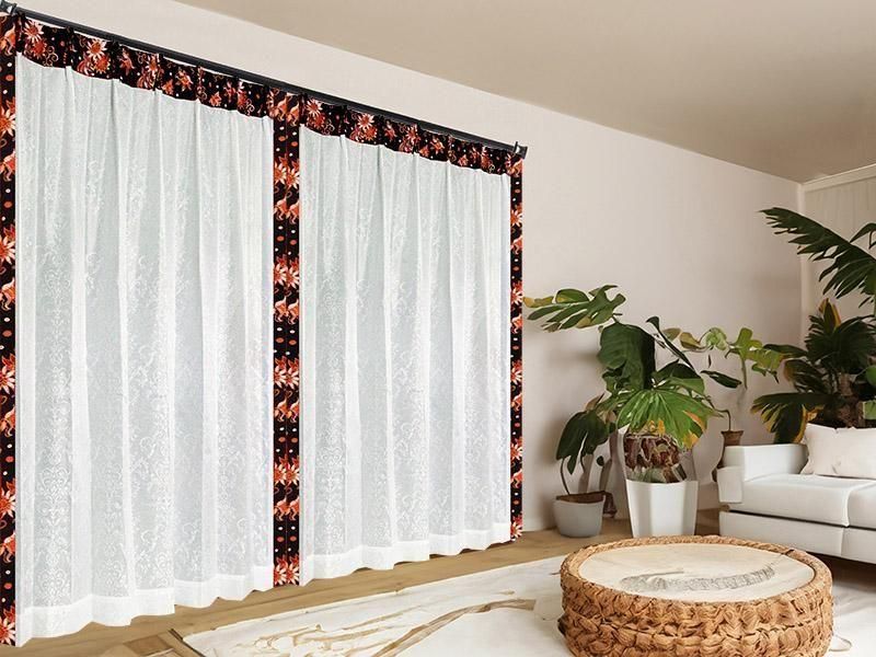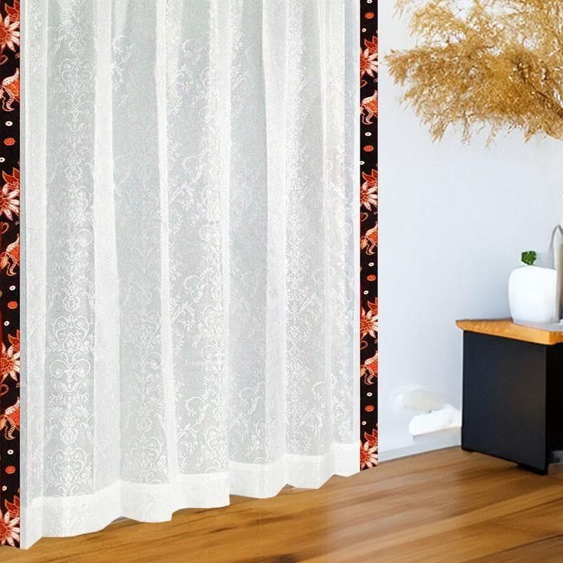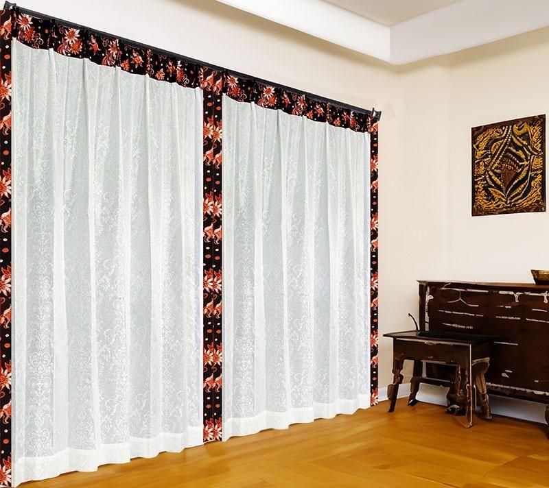 白色ロココ調ダマスク柄レースをフレーム状に彩ったアジアンテイストのレースカーテン。
