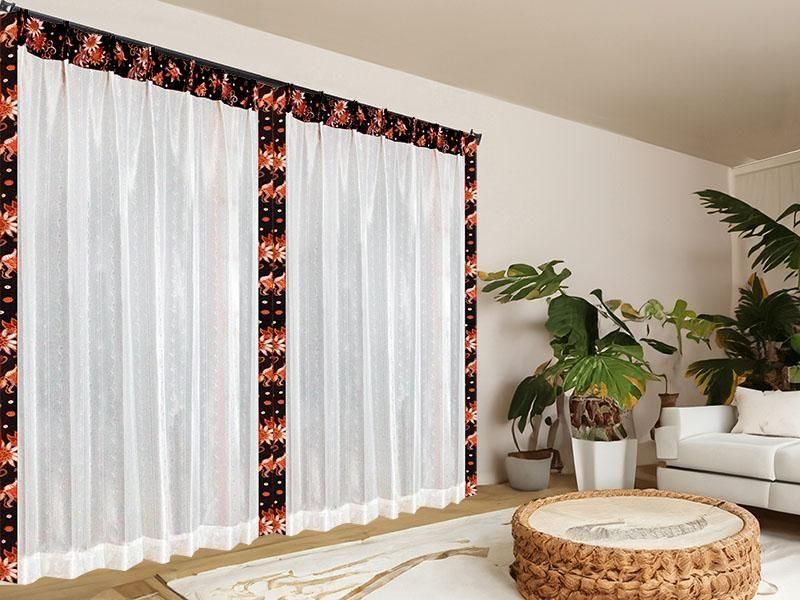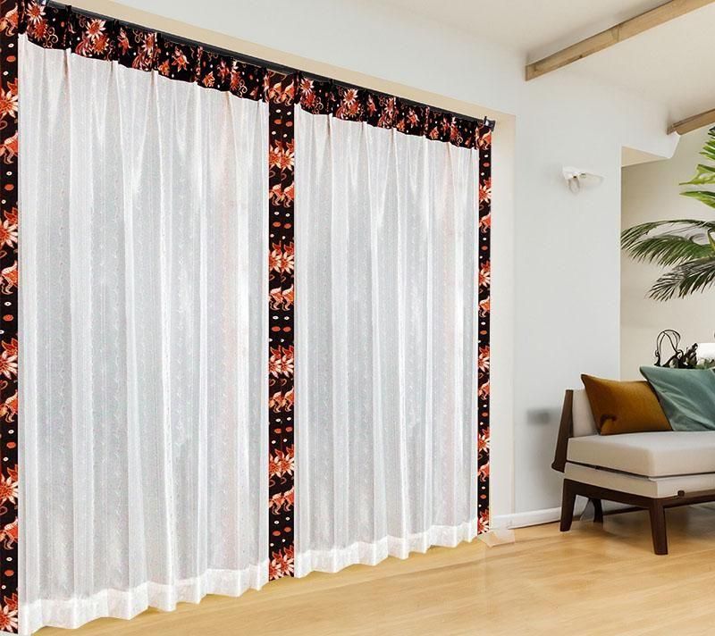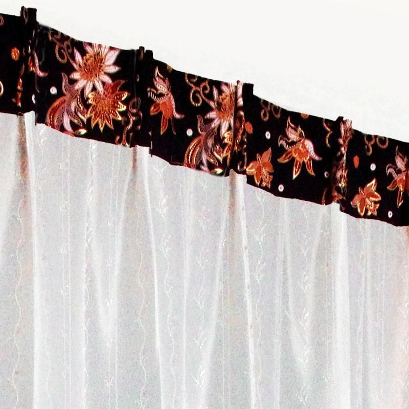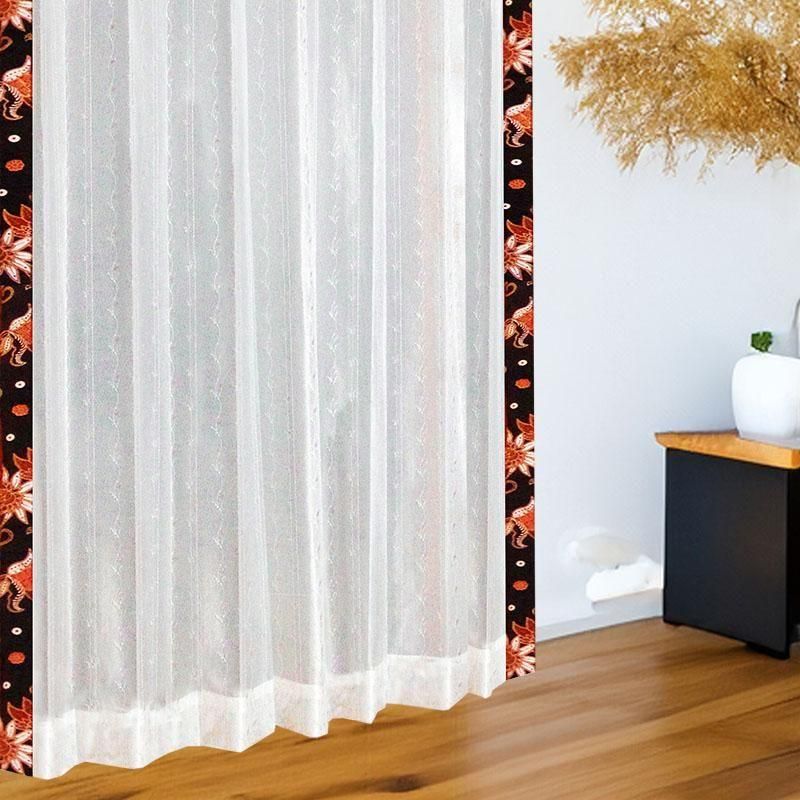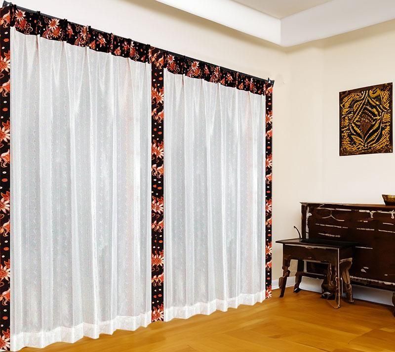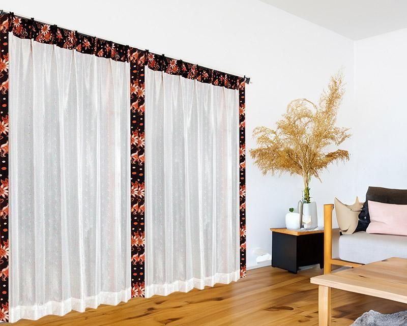 おしゃれなプチリーフ柄レースをフレーム状に彩ったアジアンテイストの多機能レースカーテン。