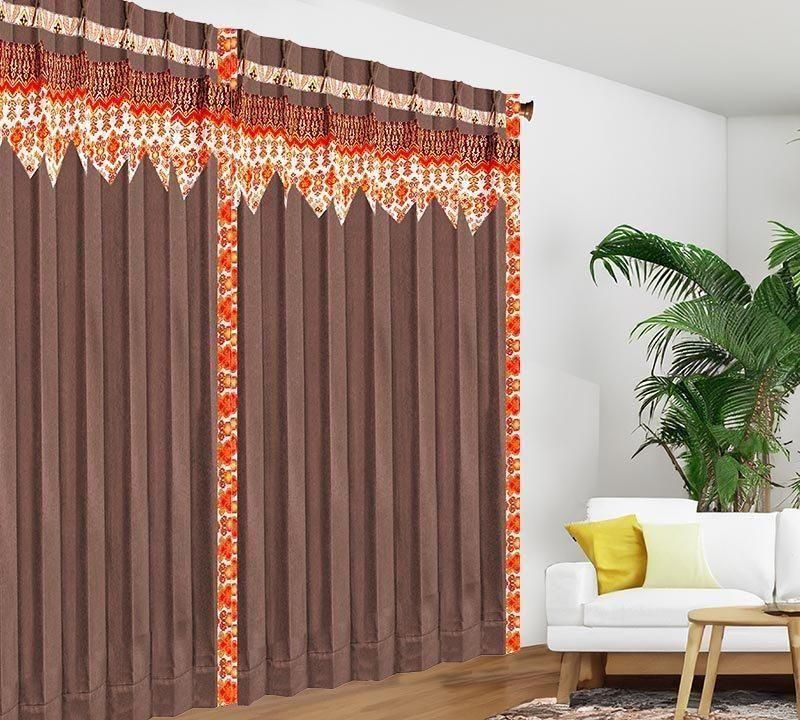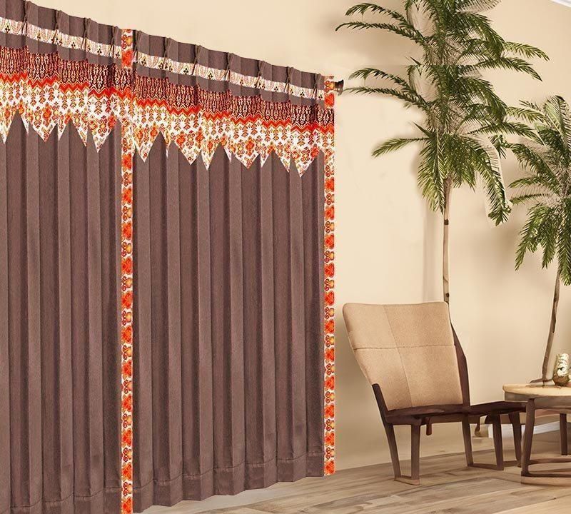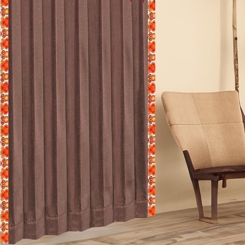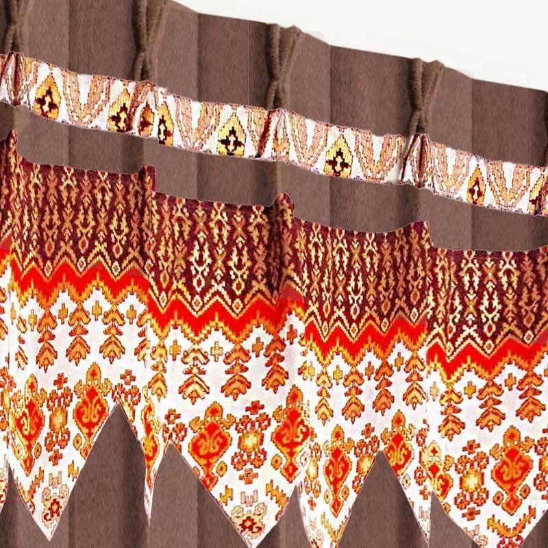 ブラウン無地ドレープ上部に、バリ島直輸入のマンダリンオレンジ立ち湧く模様プラダバティック布フリルを配したオリジナルデザインです。