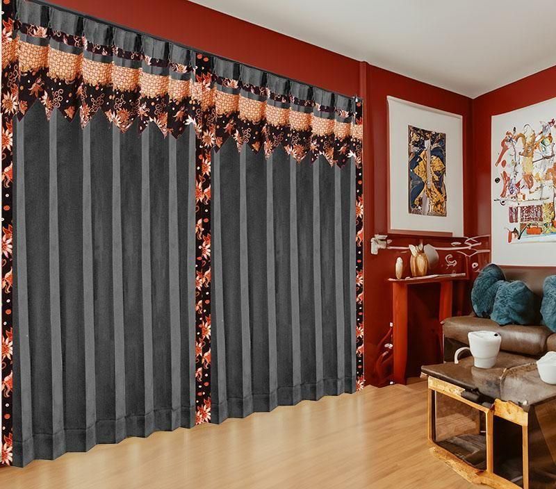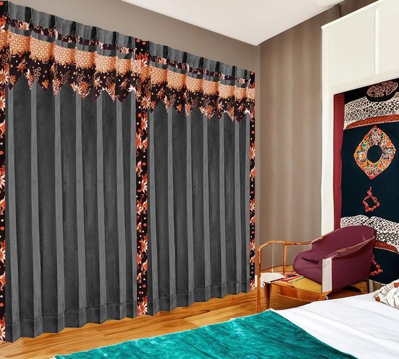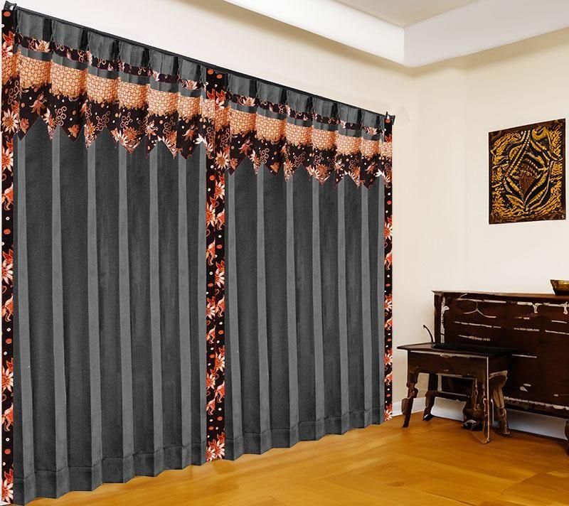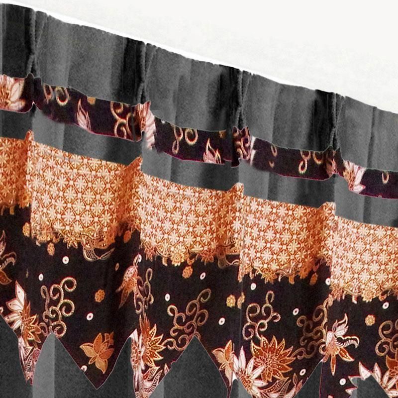 バリ島直輸入のベージュ雪の輪模様プラダバティック布フリルを、ブラック無地ドレープ上部に配したアジアンモダンなオリジナルデザイン。遮光1級・防炎・遮熱・防音・保温の高機能を兼ね備え、ミニマルでありながら洗練された、かっこいい男の部屋を演出します。