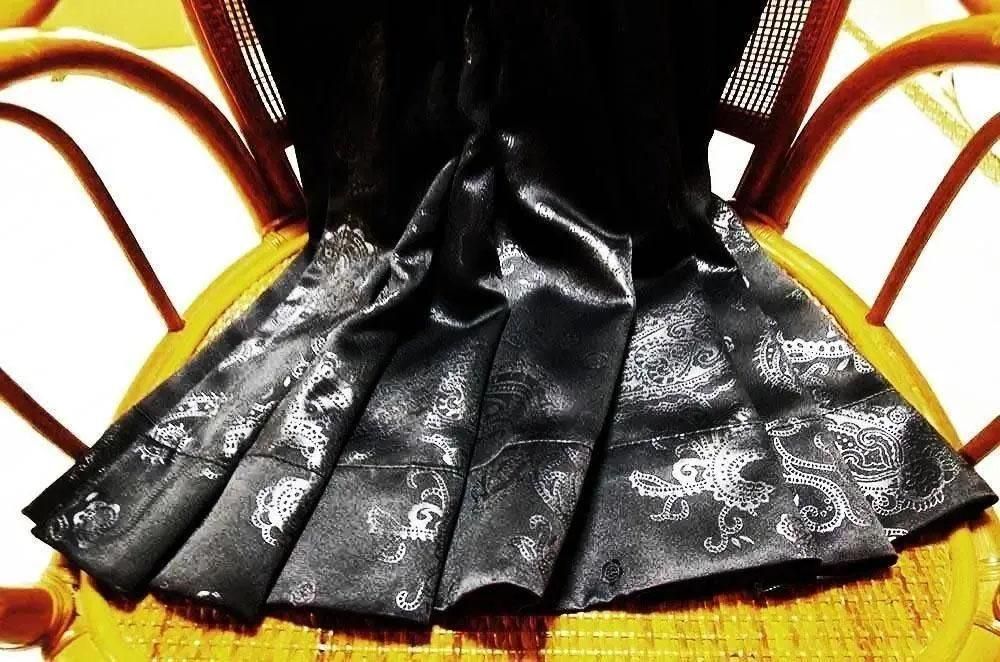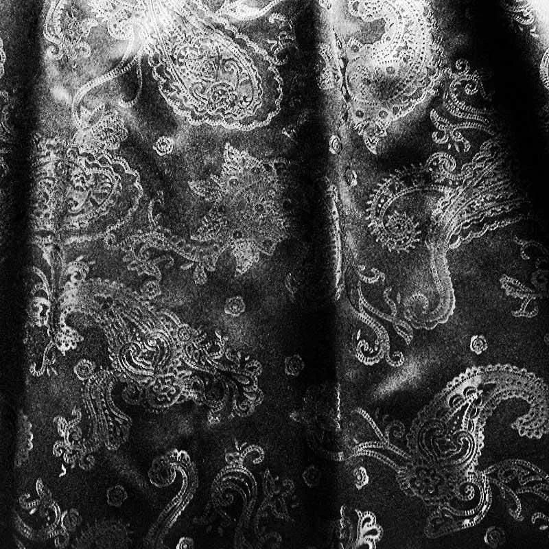 重厚感のある黒のペーズリー柄に、やわらかなベージュの雪の輪模様フリルがアクセントとして映えるデザイン。ボヘミアンテイストを取り入れつつ、落ち着きと高級感を兼ね備えた、メンズカーテンならではのスタイリッシュな一枚です。