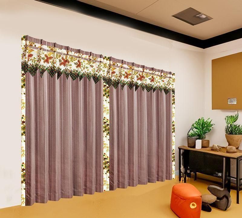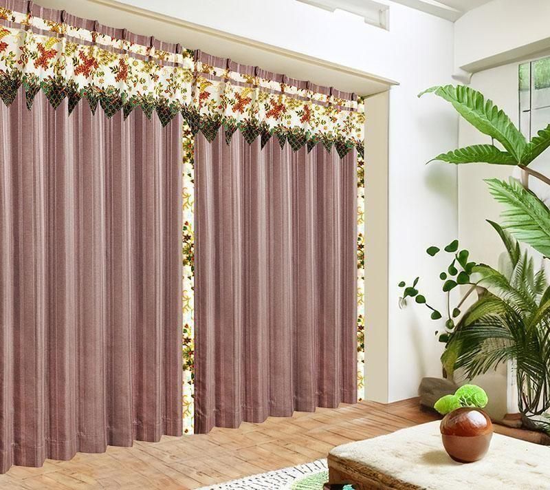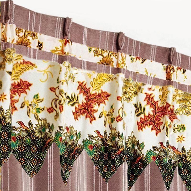 ブラウンのピンストライプ柄ドレープに、若草色の蔓草模様プラダバティック布をフリルとして組み合わせたメンズカーテン。遮光2級・形状記憶加工で、かっこいいミニマルな男前部屋に爽やかさと個性を添えます。