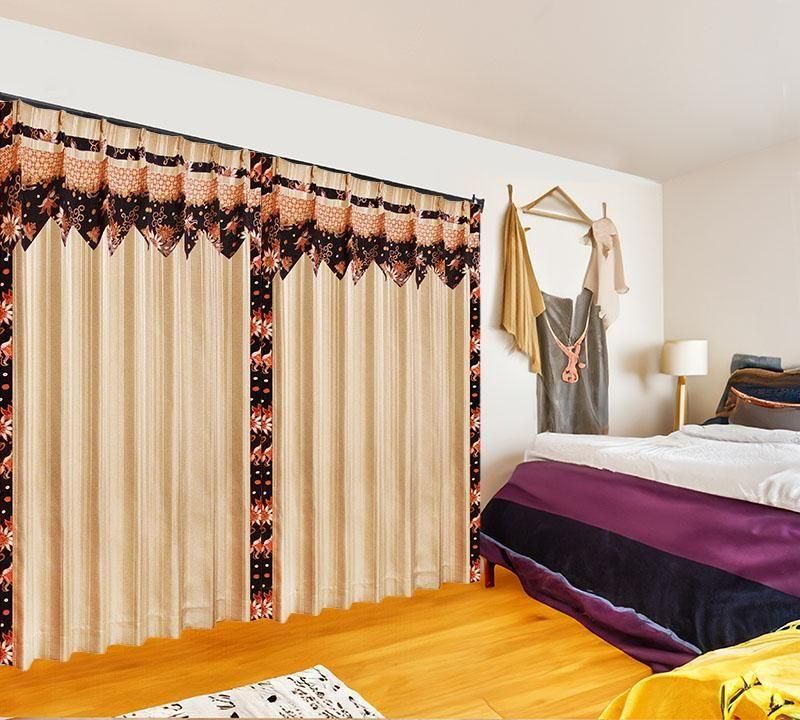 ベージュ色ピンストライプ柄ドレープ上部に、バリ島直輸入の雪の輪模様プラダバティック布をフリルとして施したオリジナルデザイン。遮光2級・形状記憶加工で美しいドレープを長く保ち、モダンで落ち着きのあるアジアン空間を演出します。