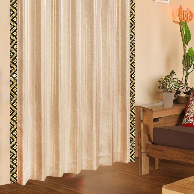 ベージュのピンストライプドレープに、バリ島直輸入パープルのダイヤ模様プラダバティック布をフリルであしらった、遮光2級・形状記憶加工のラグジュアリーなメンズカーテン。かっこいい男部屋を格上げします。