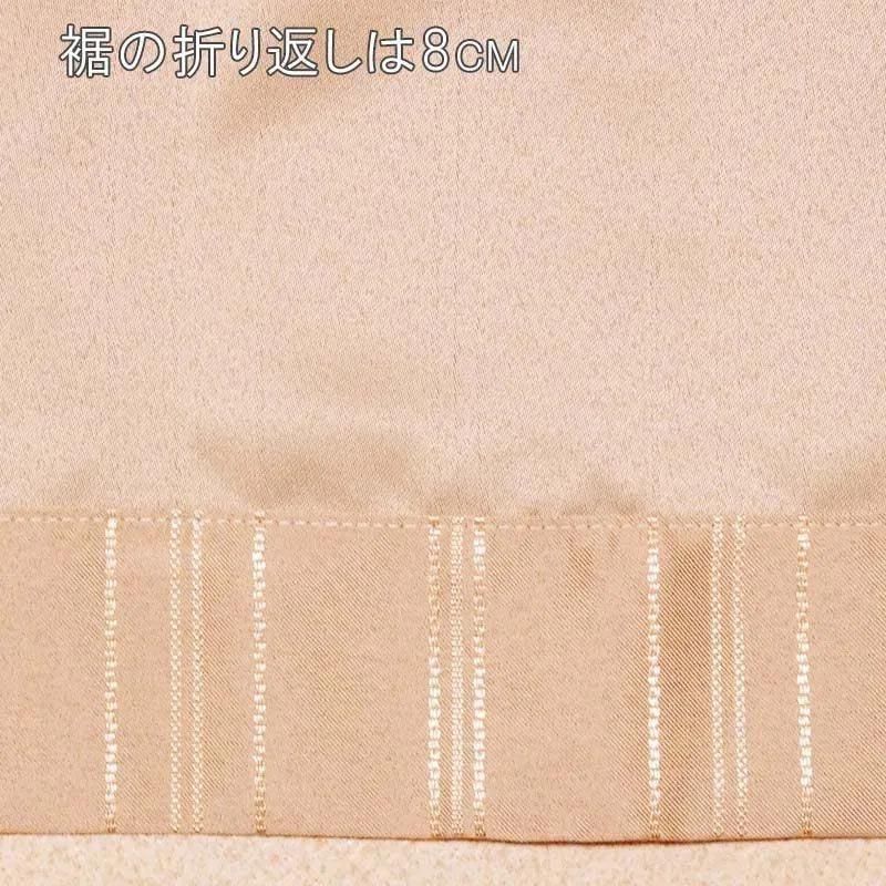 「MEBEジオンMラニ」は、ベージュのピンストライプ柄ドレープ上部に、バリ島から直輸入したマンダリンオレンジの立ち湧く模様プラダバティック布を贅沢にフリルとして施した、ラグジュアリー感あふれるアジアン風オリジナルデザインのメンズカーテンです。遮光2級と形状記憶加工により、美しいドレープと快適な光環境を両立し、かっこいい大人の男部屋を完成させます。
