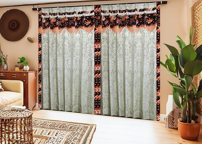 鳥モチーフのセメン文様バティックを融合した高級アジアンカーテン。