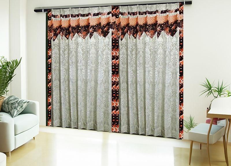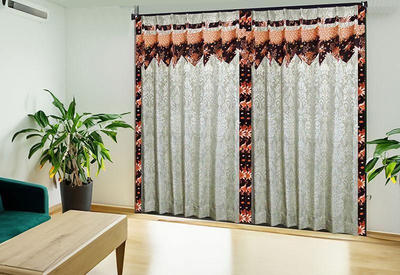 ブラウン色ドレープに、立体感ある高級ジャカード・ダマスク柄と、