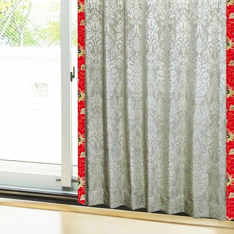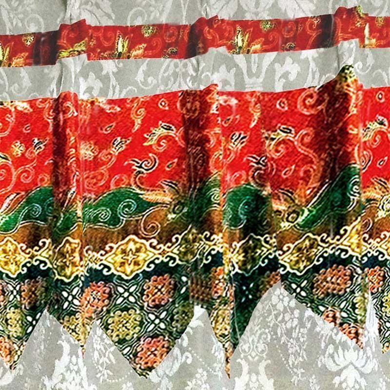 バティック布フリルをあしらった、遮光2級・裏地付き遮熱防音エスニックカーテン。