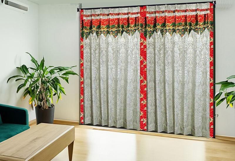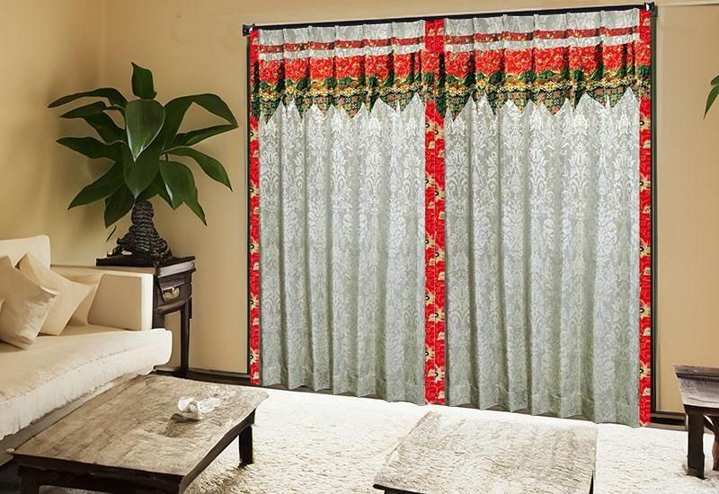 フリル状に施した、モダンなオリジナルデザインのエスニックカーテンです。